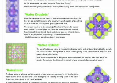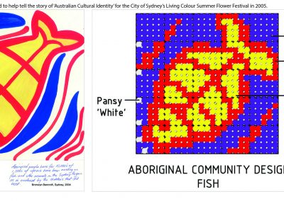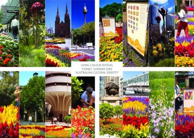 This bi-annual initiative was initially funded prior to the 2000 Olympics as a way of celebrating Sydney as the Jewel in Australia’s Crown. An established project when Ludwig took it over in late 2003, the Sydney region was experiencing a severe drought and the water hungry, basic floral displays from previous years could not be repeated. The project needed to evolve to remain a popular attraction and investment with local people. Ludwig developed a series of strong concepts with clear community benefits at the core of each. With a project budget of several million dollars to be spent twice a year on summer and spring displays, it was very important that the project achieved more, so the design of each display was used to elaborate on an aspect of each community focused concept. For Spring 2004 Ludwig developed the ‘Going Slow with the H2O’ message and a full interpretation strategy explained in a free leaflet at each display was developed that included an explanation of each design and tips on how to save water at home and in the garden. The concept Ludwig developed for the Summer 2005 displays was ‘Australian Cultural Identity’ which aimed to celebrate the young nation while also provoking thought about First Nations issues and what it will mean to be Australian in the future.
