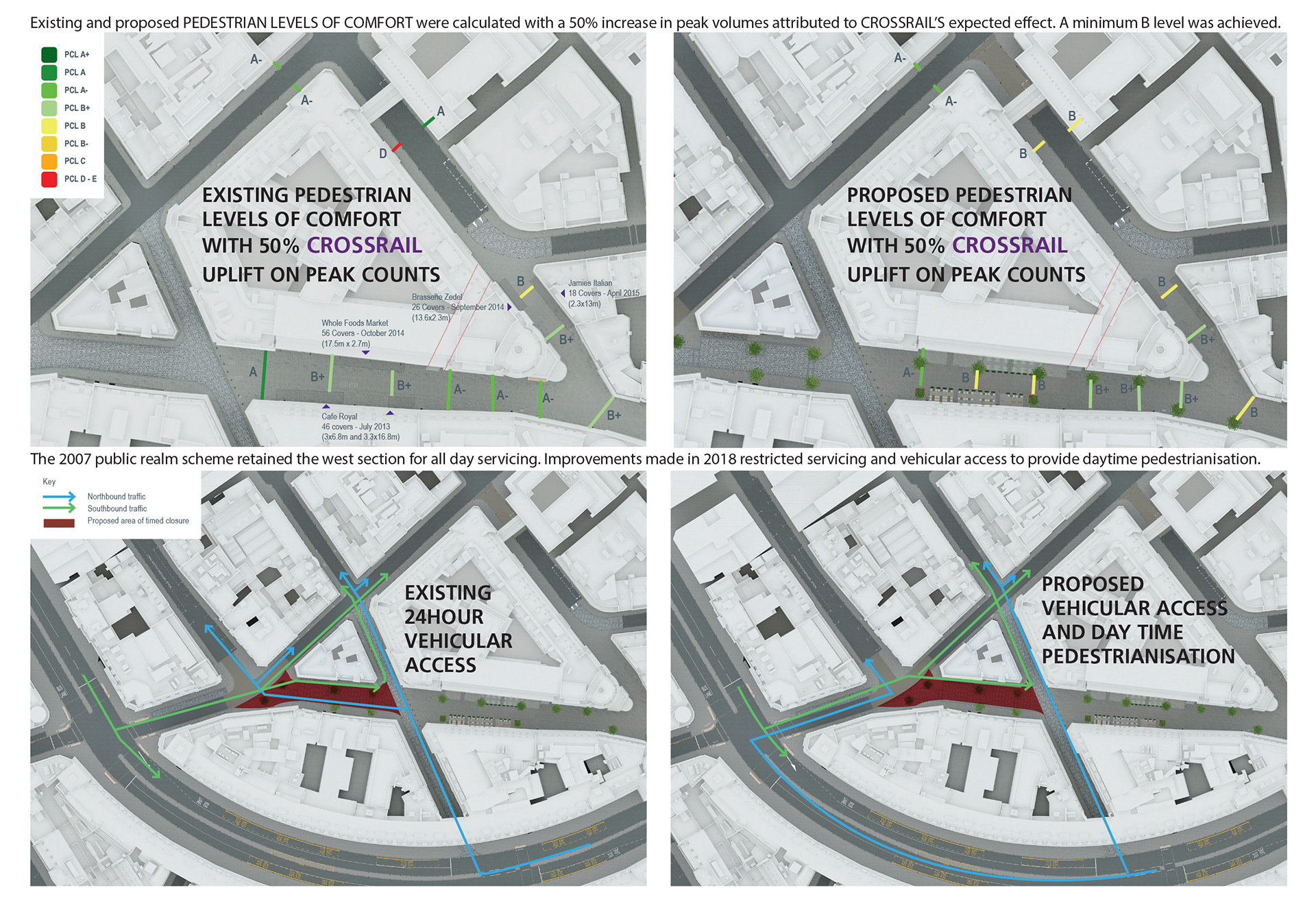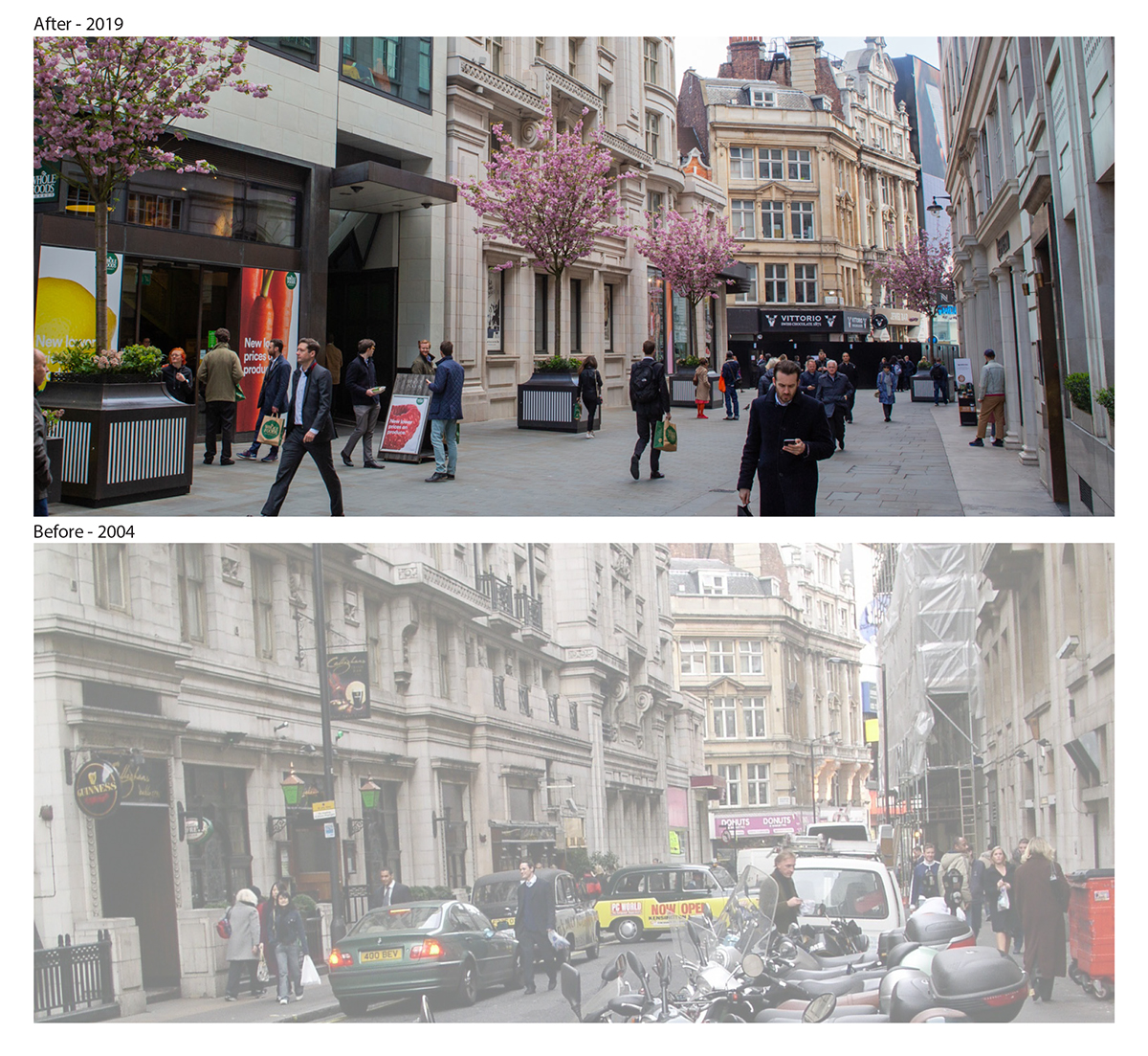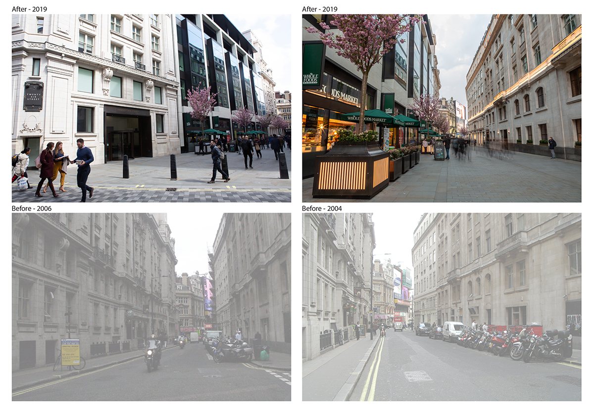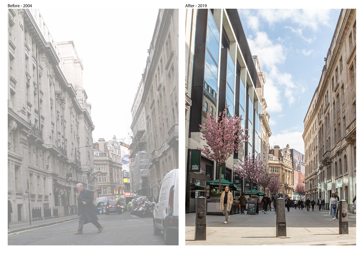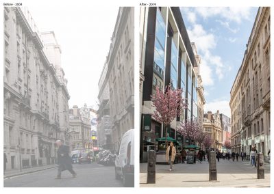 A public realm improvement project through place shaping and making strategies, planning and highways approvals, licences and legal and management agreements, street pedestrianisation, bespoke innovative street furniture design and delivered high quality alfresco dinning terraces in a grade 1 AND 2 listed environment.