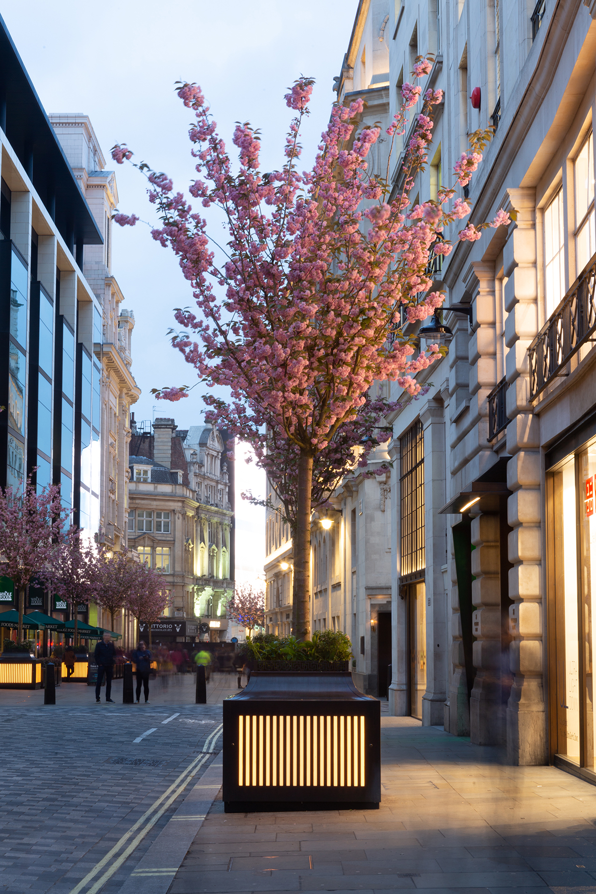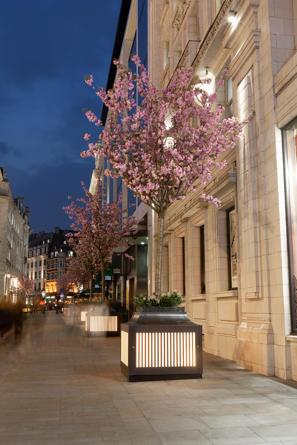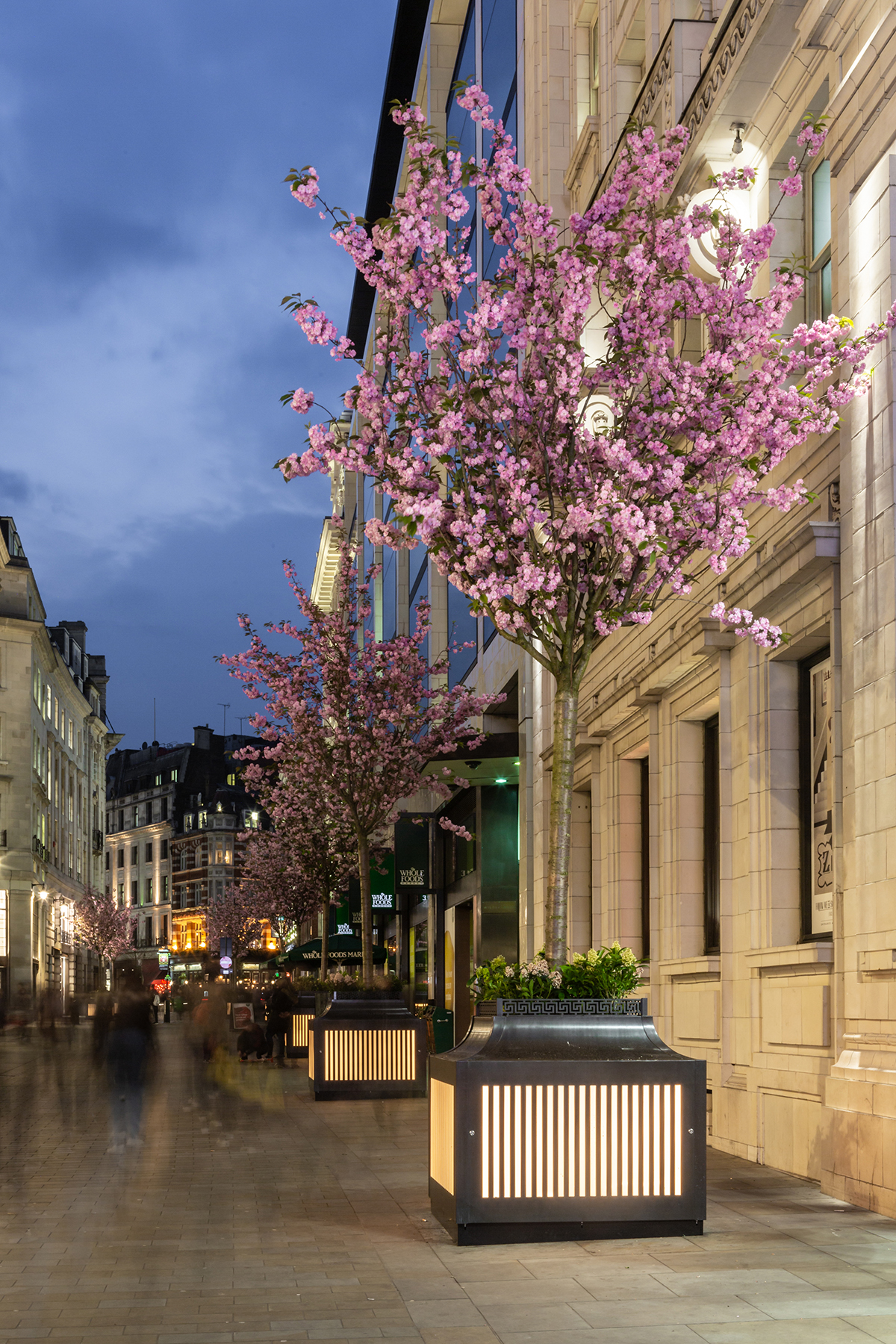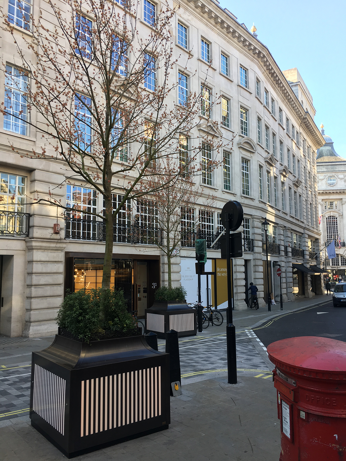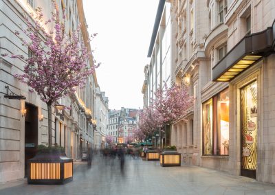 As part of the broader Regent Street Estate improvement program, Ludwig consulted to SNC Lavalin Atkins as public realm curator for The Crown Estate who were partnering with Westminster City Council to deliver this project. Planters manufactured by Creactive Design.