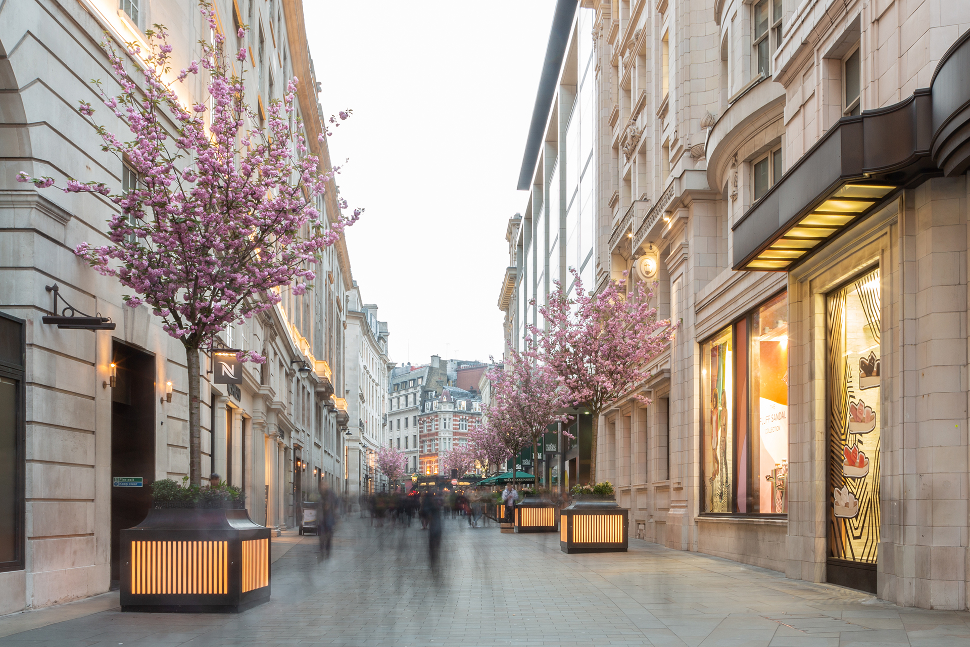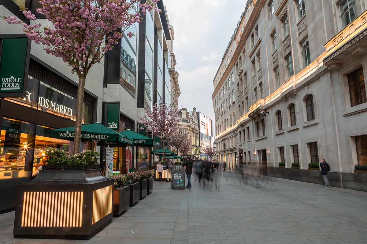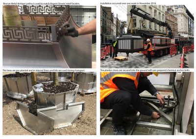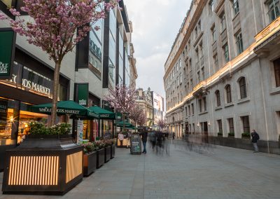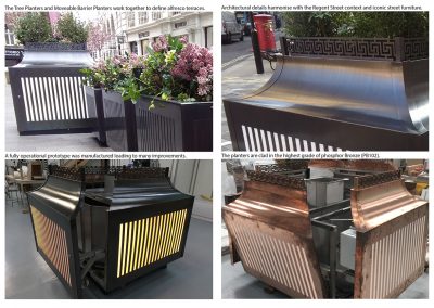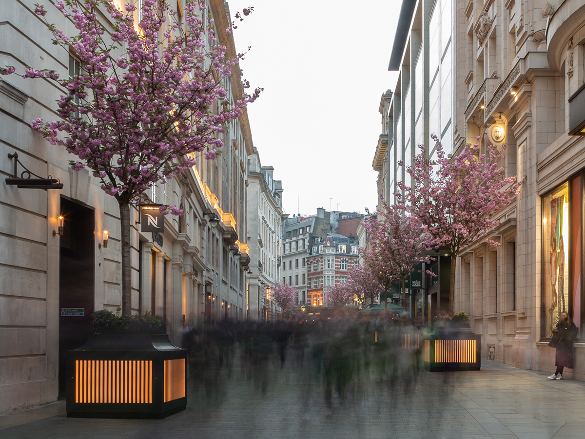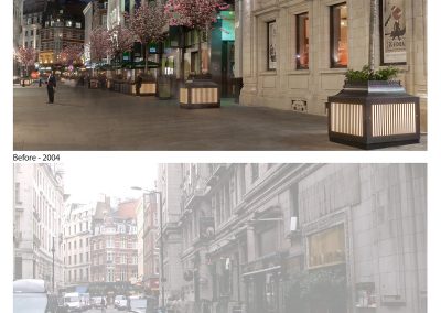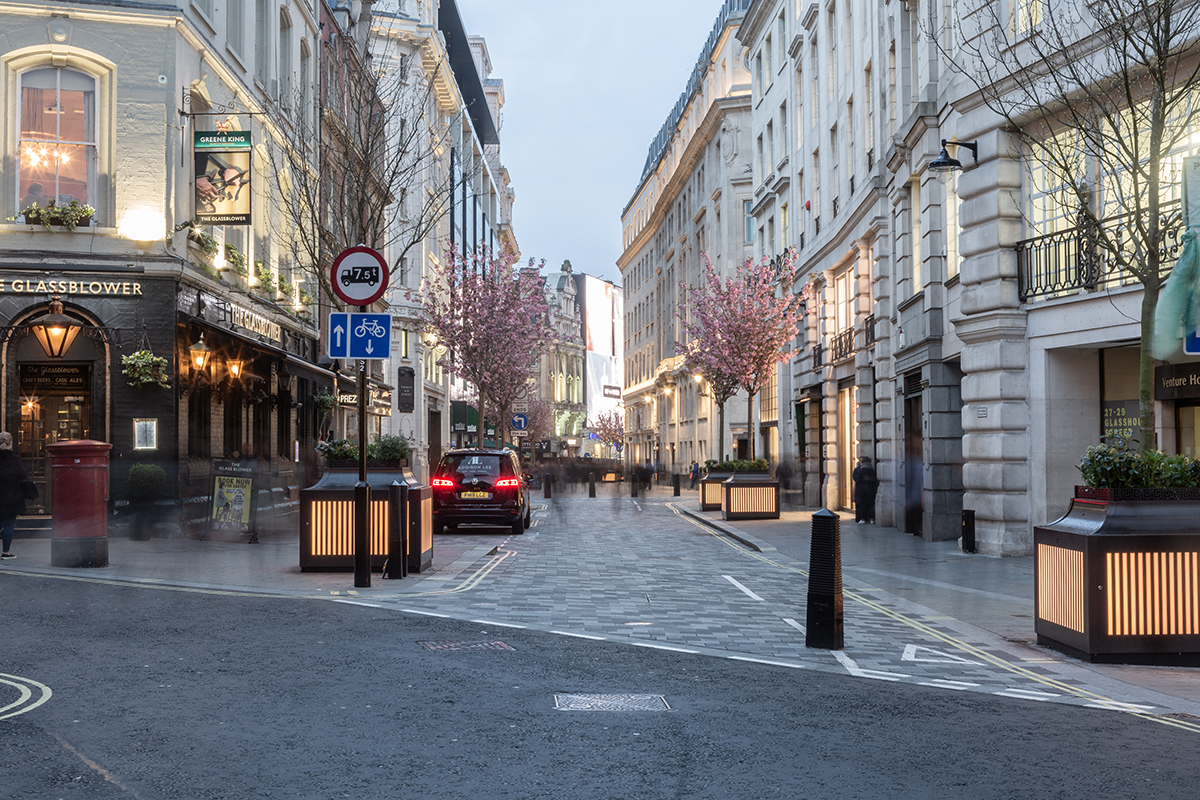As part of the broader Regent Street Estate improvement program, Ludwig consulted to SNC Lavalin Atkins as public realm curator for The Crown Estate who were partnering with Westminster City Council to deliver this project. Planters manufactured by Creactive Design.
