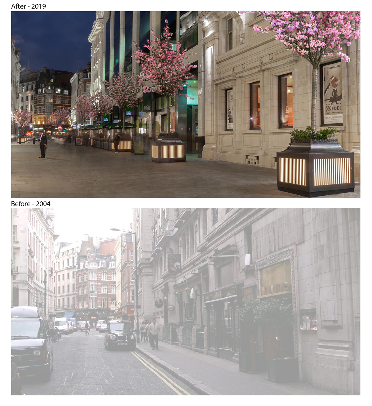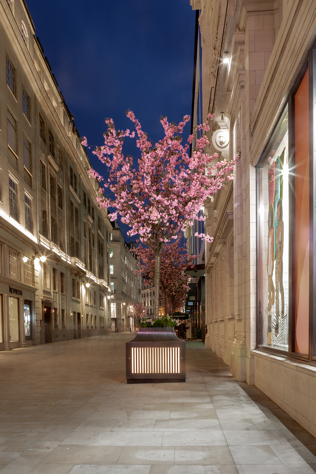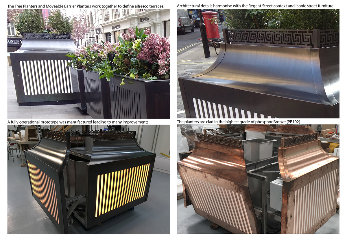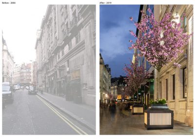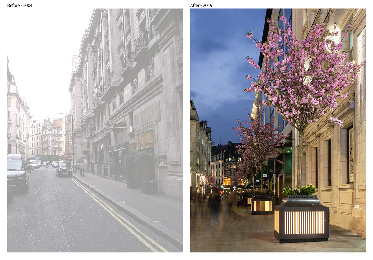 As part of the broader Regent Street Estate improvement program, Ludwig consulted to SNC Lavalin Atkins as public realm curator for The Crown Estate who were partnering with Westminster City Council to deliver this project. Planters manufactured by Creactive Design.
