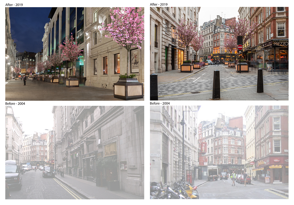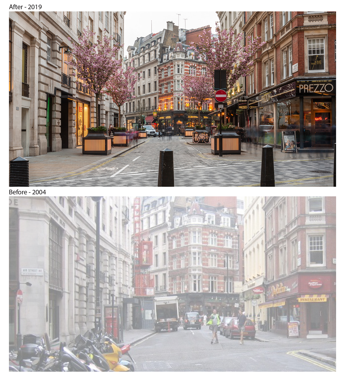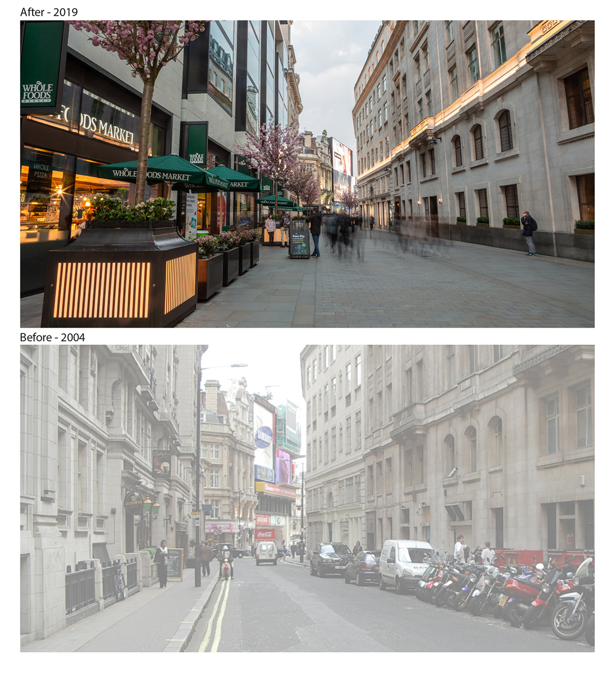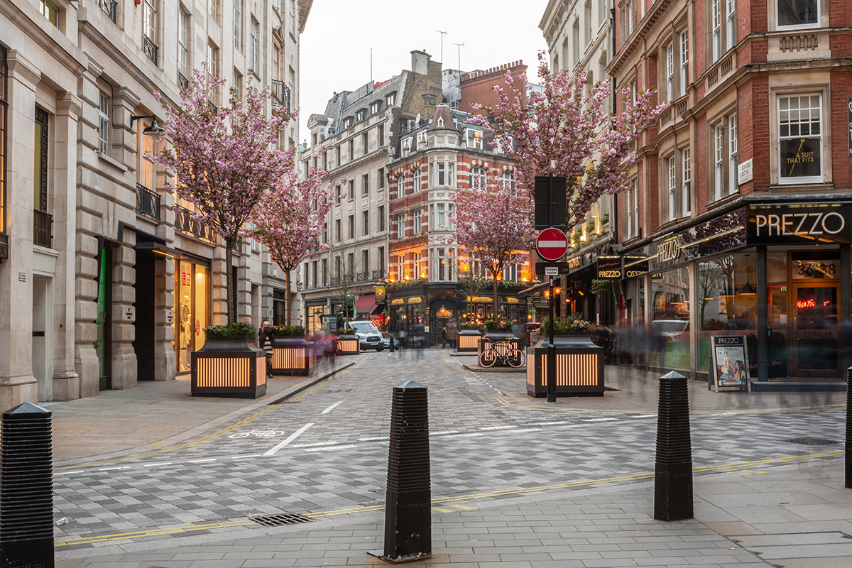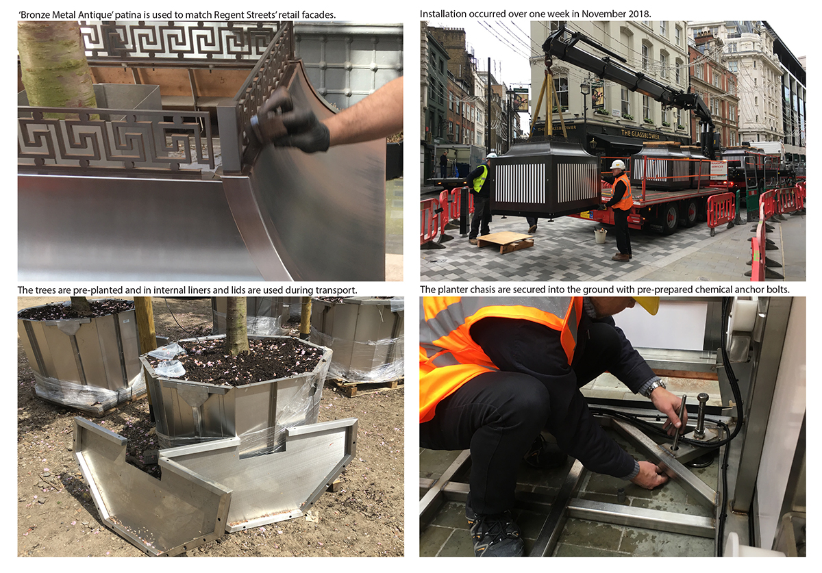 As part of the broader Regent Street Estate improvement program, Ludwig consulted to SNC Lavalin Atkins as public realm curator for The Crown Estate who were partnering with Westminster City Council to deliver this project. Planters manufactured by Creactive Design.